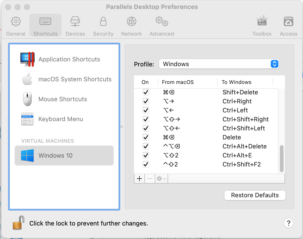 - Close all Preferences windows. You do not need to restart Parallels Desktop for the changes to take effect.